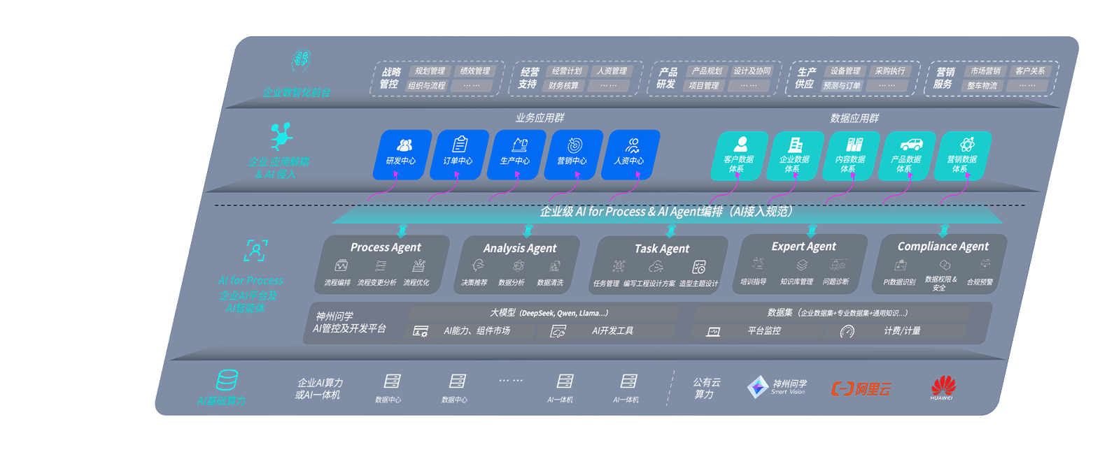端到端的一站式AI工作空间深度融合了从企业战略规划到日常经营的全流程业务板块,定向解决车企内部领域多、部门多、链条长、场景碎片化等难题,支持车企快速构建以AI为核心的生产力写作体系,实现任务执行与AI能力的无缝集成与交互